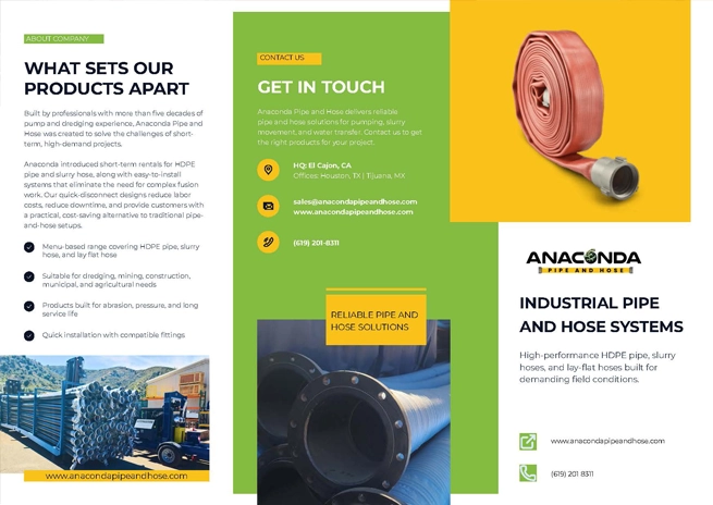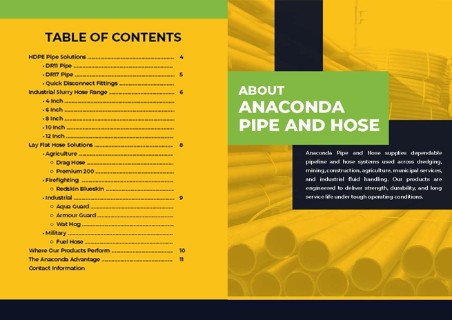 Specs & Brochures Download Anaconda Pipe and Hose brochures to learn more about our products, technical features, applications, and industry solutions. Home Specs & Brochures Company Trifold View PDF Download PDF Here Company Booklet View PDF Download PDF Here